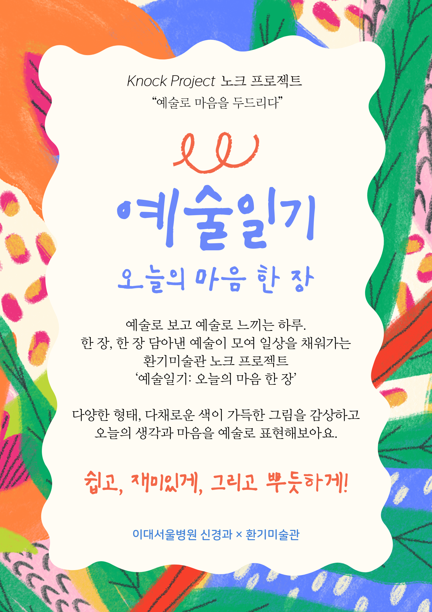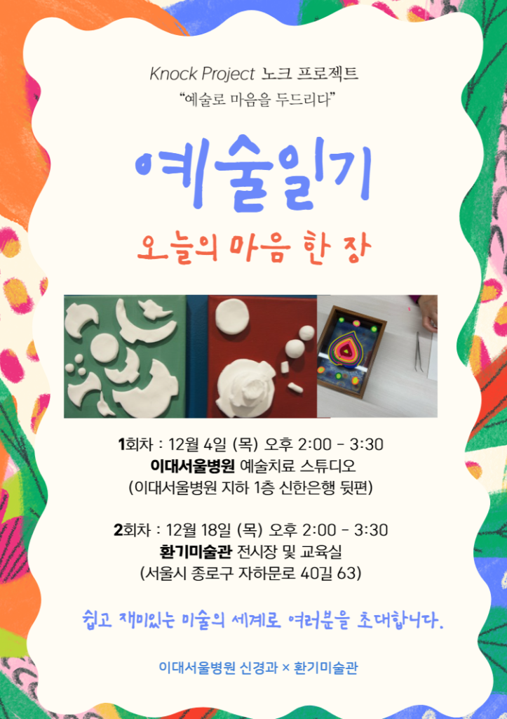 본 프로그램은 환기미술관을 비롯하여, 이대서울병원 신경과 의료진과 미술관을 기반으로 활동하는 미술치료사와 함께 하였습니다.