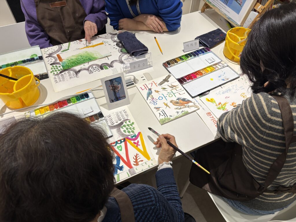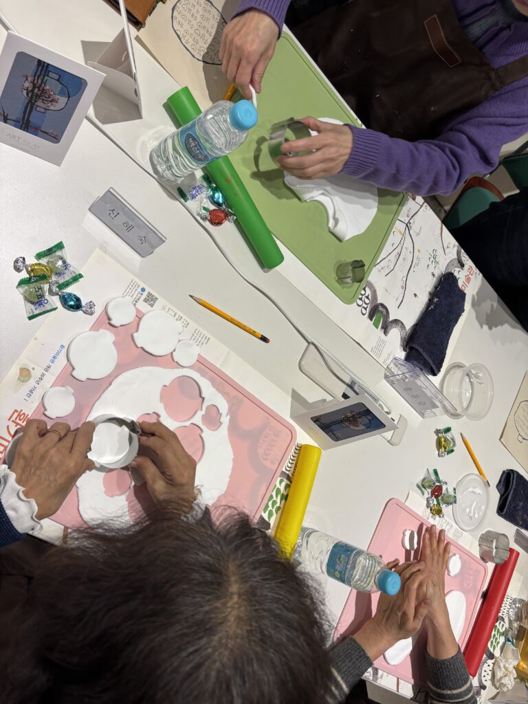 환기미술관과 이대서울병원 신경과 의료진이 협력하여 진행한 <2025 노크 프로젝트: 예술일기 ‘오늘의 마음 한 장’>은 조발성 치매 환자를 위한 예술치료 프로그램입니다. 노인성 치매 환자를 주요 대상으로 진행했던 것에서 한발 나아가 젊은 치매라 부르는 조발성 치매(만 65세 이전 발병) 환자와 그 보호자를 대상으로 진행합니다. 최근의 기억부터 잃어가는 치매 증상과 그것을 곁에서 지켜보는 가족의 마음을 예술로 기억하고 기록하는 의미를 담아낸 것으로, 작품이 매개가 되어 서로를 위로하고 응원할 수 있습니다.